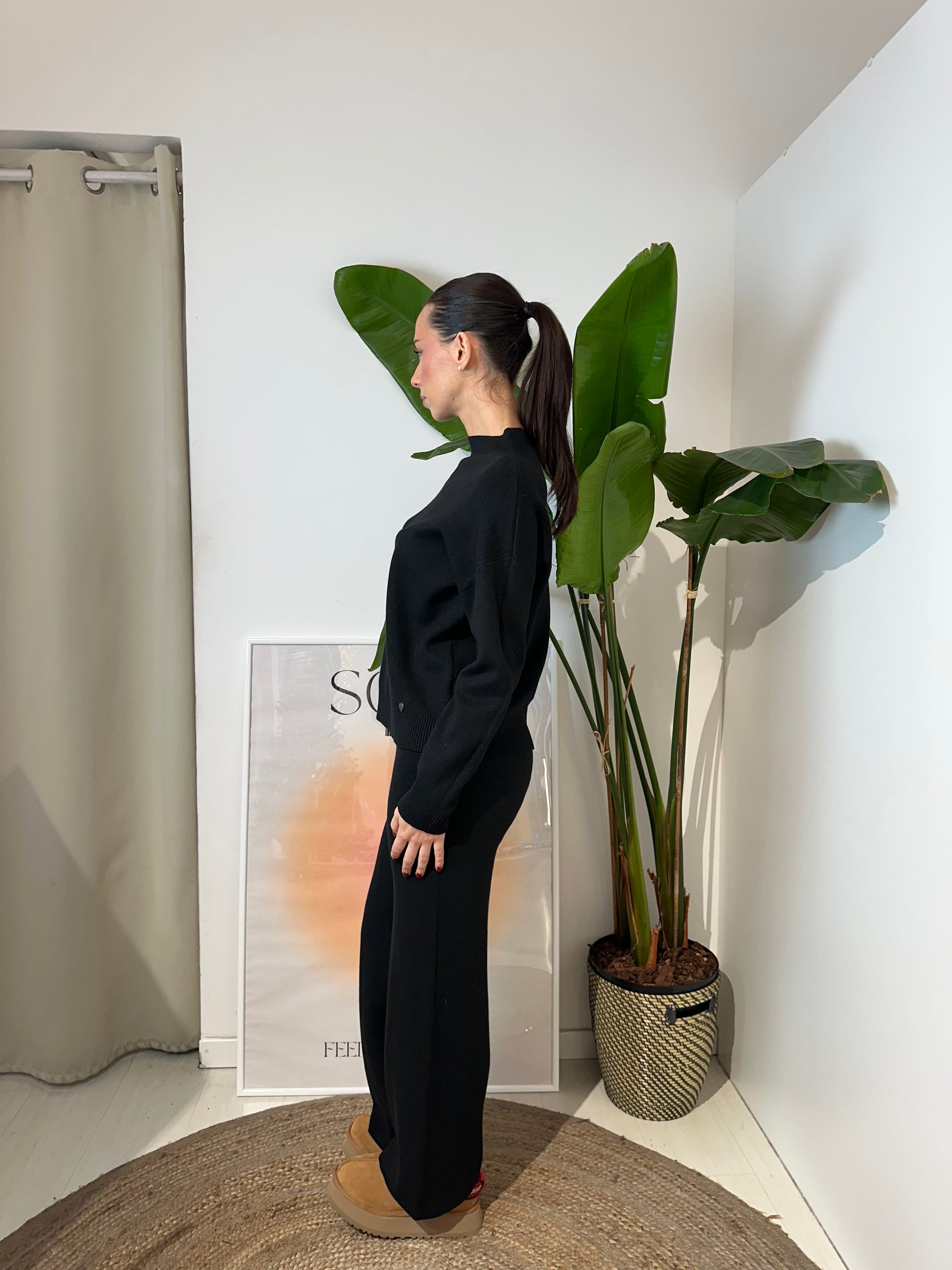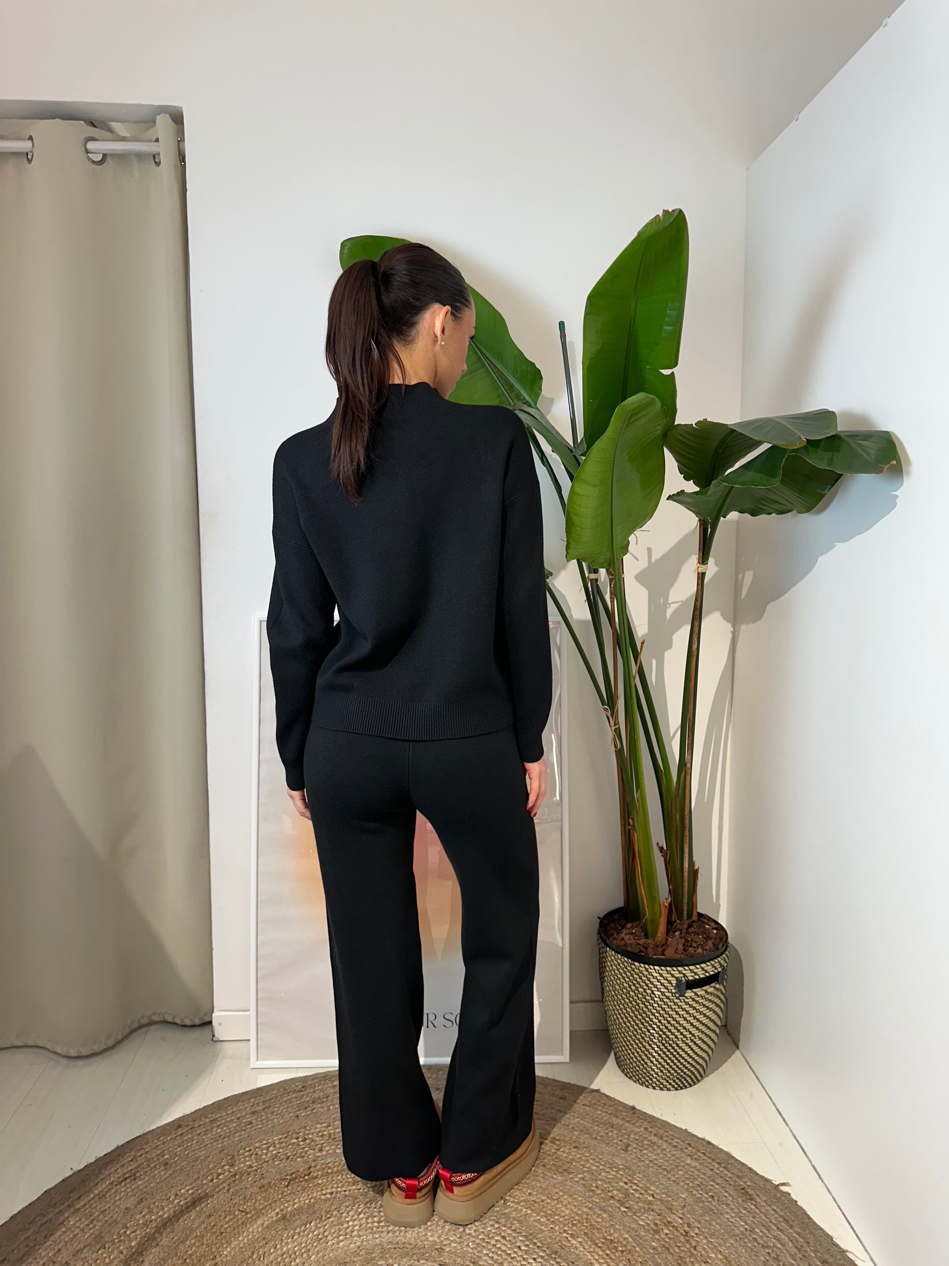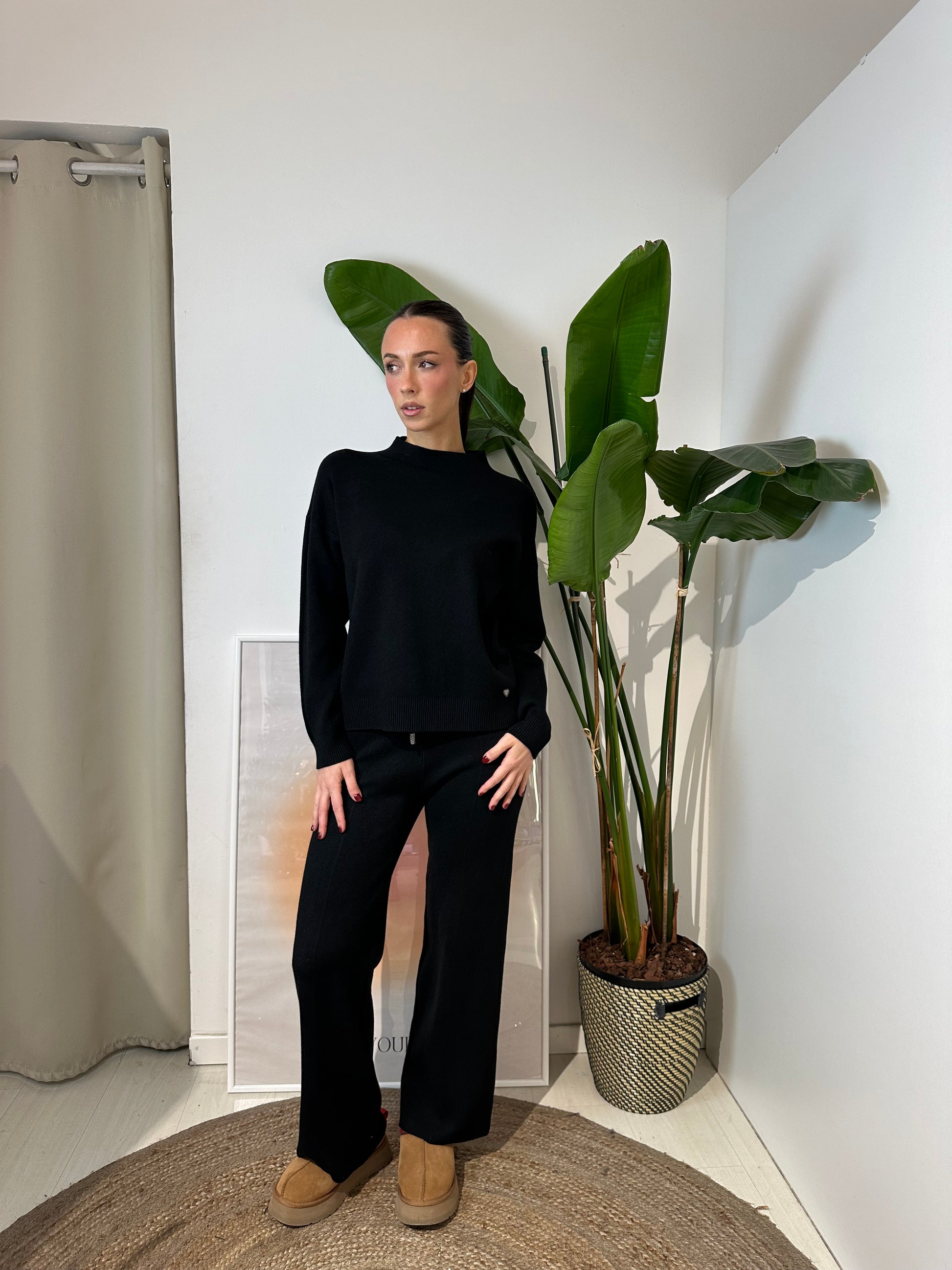 Coordinato composto da morbido maglione a collo alto + pantalone con coulisse regolabile in vita.