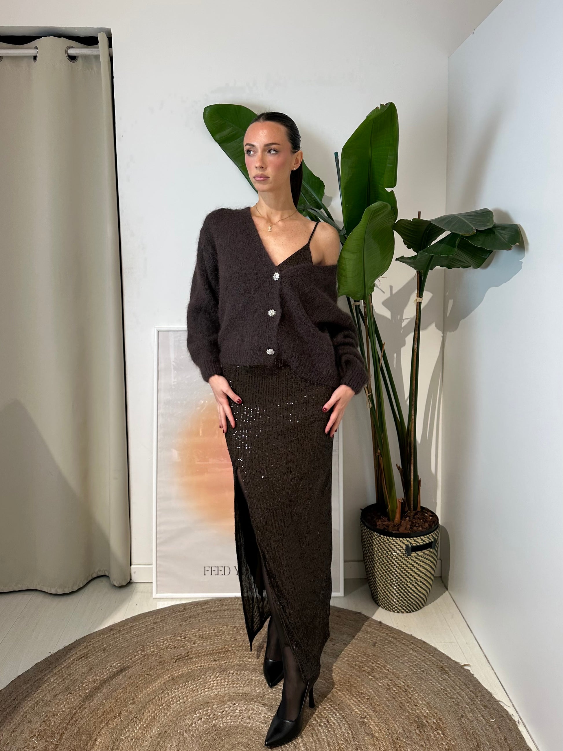 Maxi dress con profondo scollo a V, spalline sottili regolabili e spacco sul fondo.