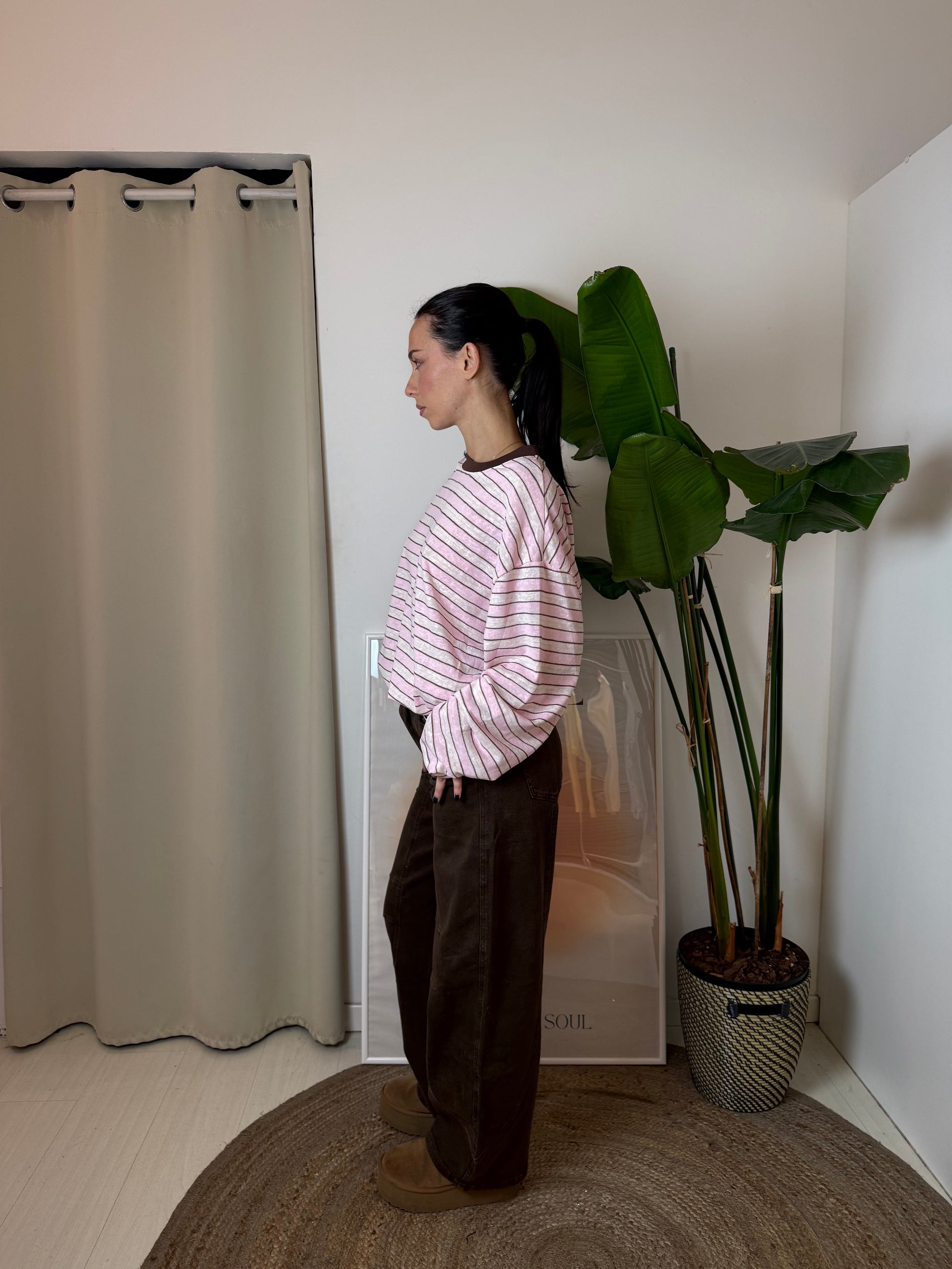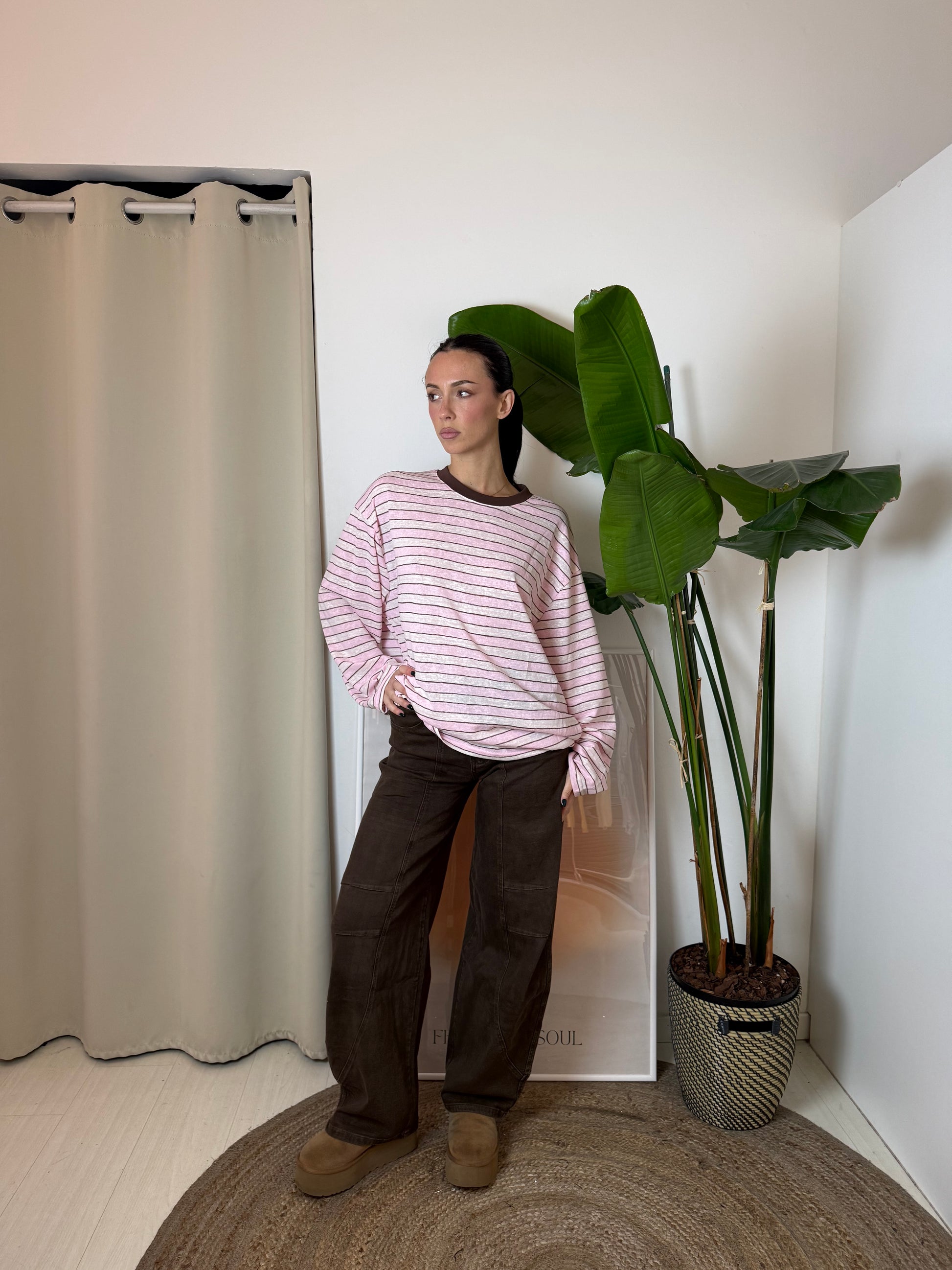 Pantalone a gamba larga dalla vestibilità baggy in colorazione marrone.